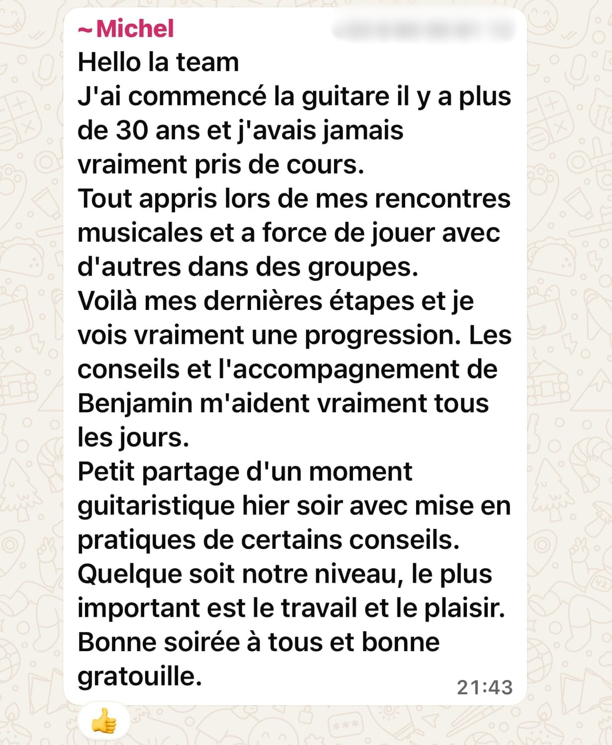 Je suis professeur de guitare depuis plus de 30 ans.